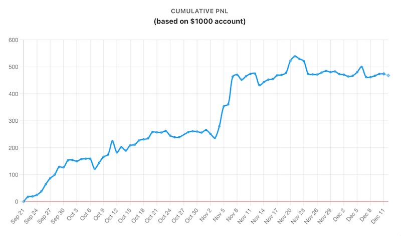 Exchanges : Bitget, Binance, Finandy, Bybit, OKX, Blofin*, (Hyperliquid OK but less trades, less profit)